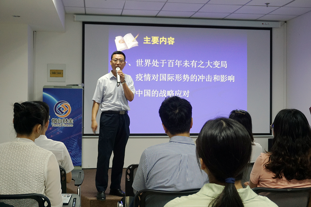 為助力集團干部職工拓展視野,增長知識,進一步認清當前國內(nèi)國際形勢,擔當使命,自覺應對風險挑戰(zhàn),7月23日上午,集團舉辦了第三期“財金大講堂”,開展國情黨情和形勢政策教育,邀請到中共煙臺市委黨校哲學教研室副主任、副教授劉中興帶來《當前國際形勢——疫情沖擊與戰(zhàn)略應對》專題講座。